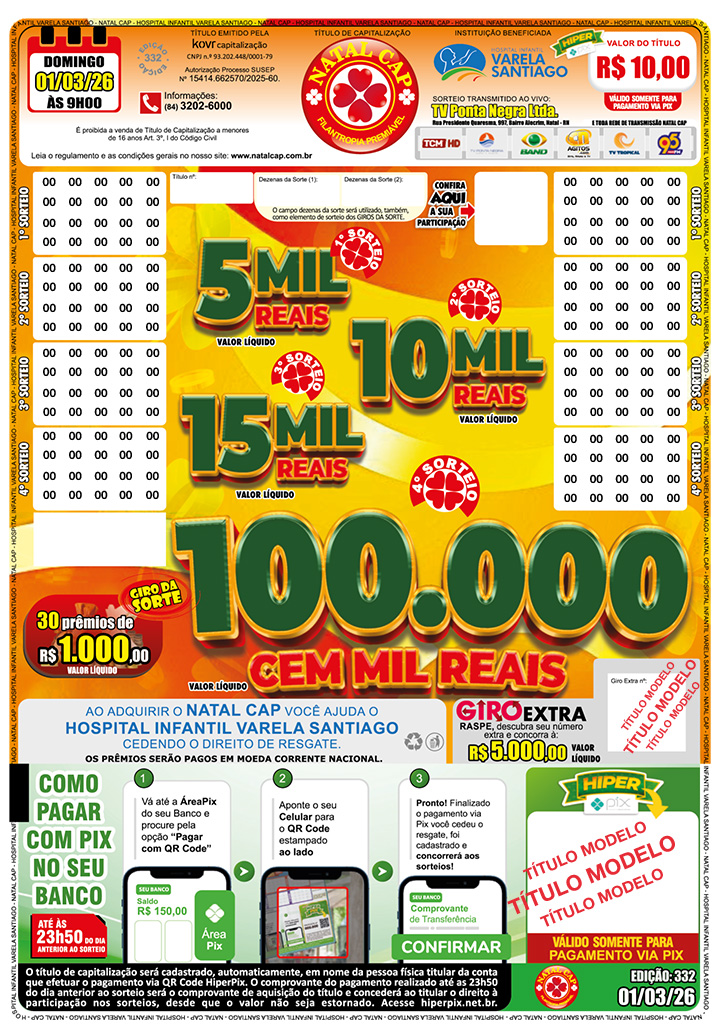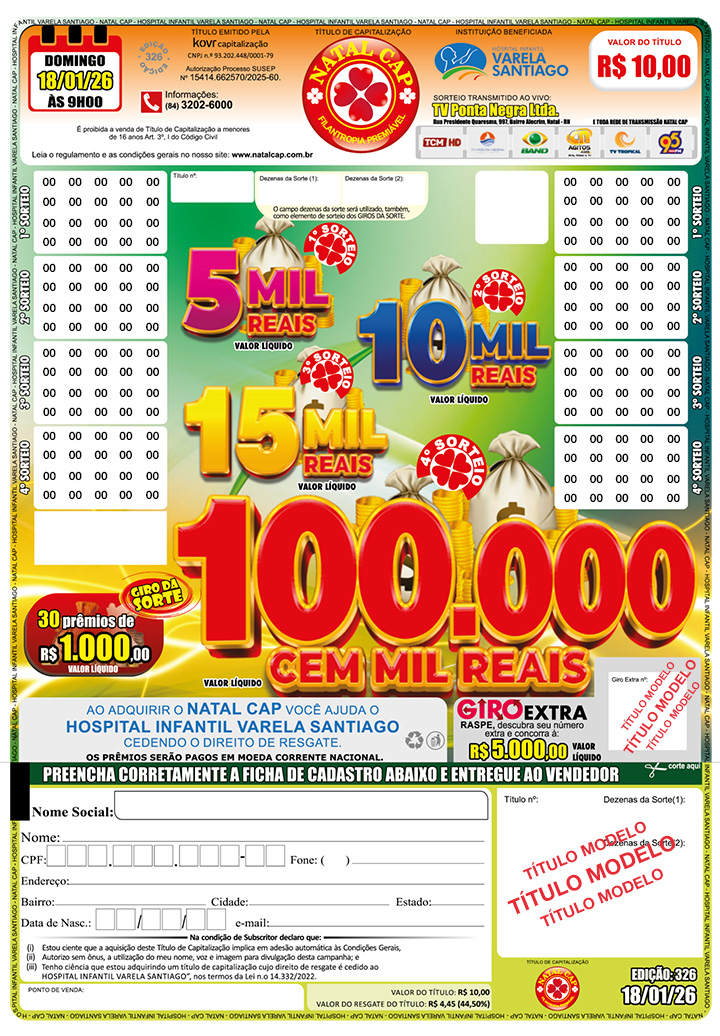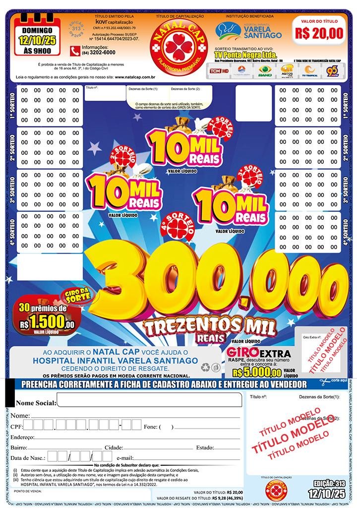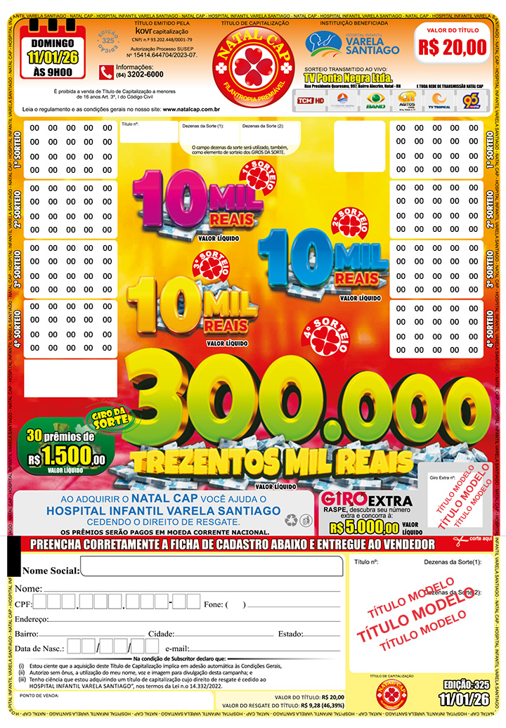 Compre seu título até as 23:59 do sábado sem sair de casa em apenas alguns passos 📲 Além disso, você pode acompanhar ganhadores, novidades e muito mais sobre o Natal Cap! Baixe já 🍀