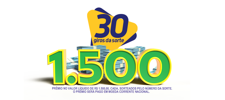 30 PRÊMIOS DE R$ 1.500,00 (cada) - Valor líquido